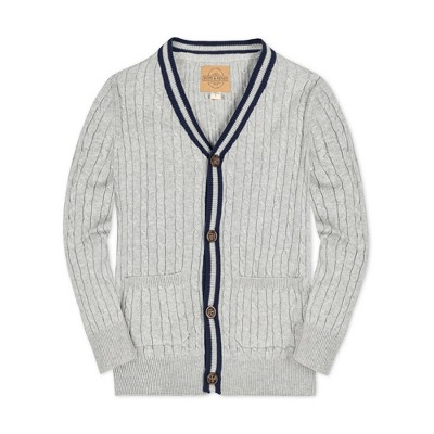 Hope & Henry Boys' Long Sleeve Cable Knit Cardigan Sweater with Stripe Trim, Infant