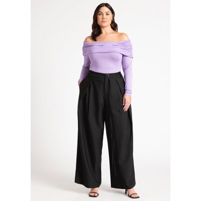 ELOQUII Pleat Detail Trouser With Long Belt