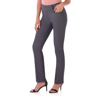 Rekucci Women's Pull-On Straight Leg Pants with Pockets & Tummy Control – Office Workwear Stretch Trousers