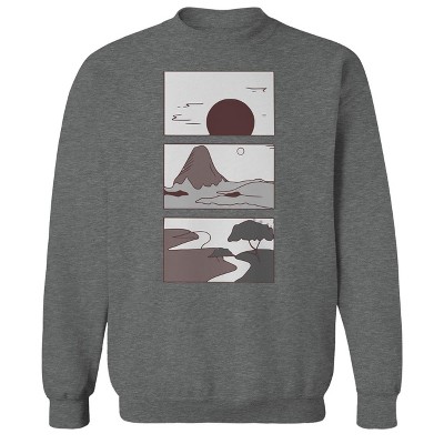 Rerun Island Men's Landscapes Sun Mountain River Long Sleeve Graphic Cotton Pullover Sweatshirt