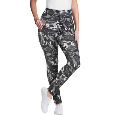 Woman Within Stretch-Cotton Knit Pull-On Printed Pocket Leggings