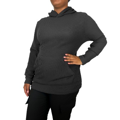 Blue Ice Women's Loose Fit Waffle Knit Thermal Pullover Hoodie