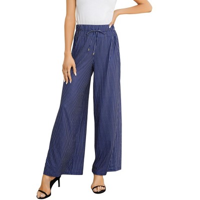 BLUEMING Womens Wide Leg Pants Casual Palazzo Pants Flowy Pants Elastic High Waist Drawstring Lounges