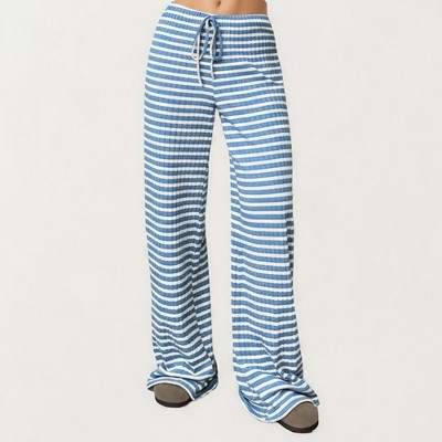 Anna-Kaci Women's Striped Wide Leg Lounge Pants with Adjustable Drawstring Waist and Relaxed Fit