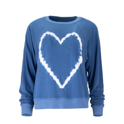 Heart-to-Heart Cotton Sweatshirt - Acid Denim - LEZAT