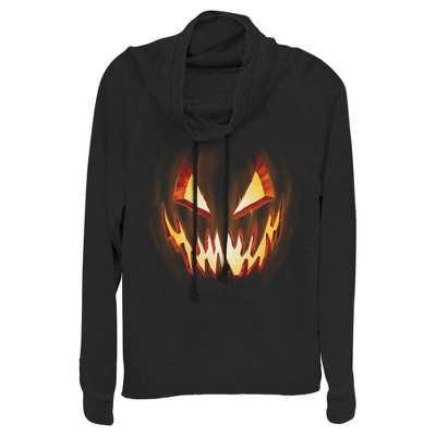 Juniors Womens CHIN UP Halloween Jack o' Lantern Face Cowl Neck Sweatshirt