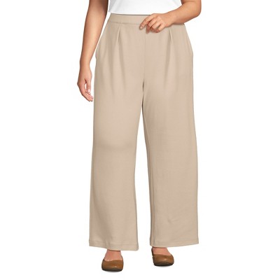 Lands' End Women's Knit High Rise Pleated Wide Leg Pants