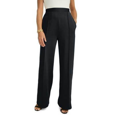 Woman Within 7-Day Knit Embroidered Straight-Leg Pull-On Pants
