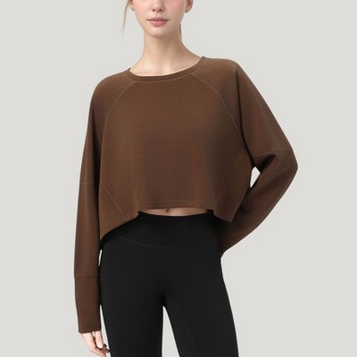 Anna-Kaci Active Women's Cropped Long Sleeve Active Top with Relaxed Fit and Crew Neck Design