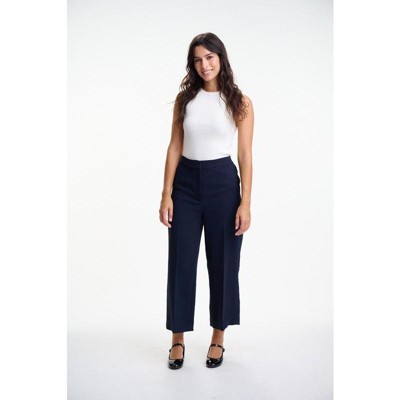 Lafidi Women’s High-Rise Cropped Pants – Straight Leg Business Casual Trousers with Slash Pockets and Elastic Back Waist