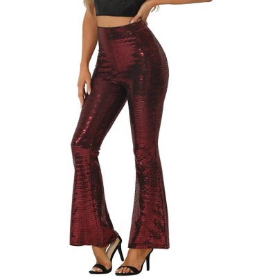 INSPIRE CHIC Women's Sparkle Sequin Stretch High Waist Shiny Flare Bottoms Pants