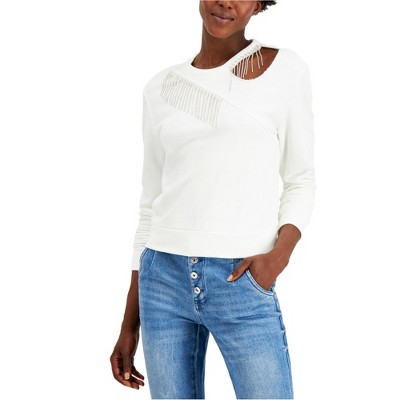 I.N.C International Concepts Womens Bejewelled Sweatshirt, white, Large