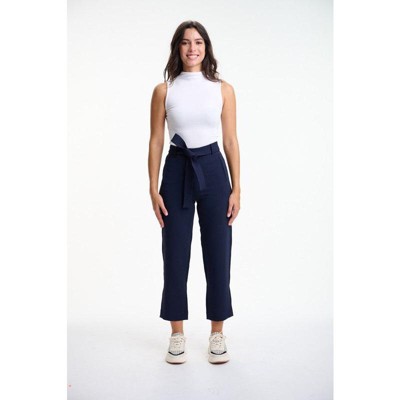 Lafidi Women’s Mid-Rise Cropped Pants – Relaxed Tapered Leg Trousers with Sash Belt and Welt Pockets