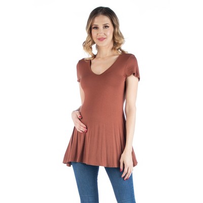 24seven Comfort Apparel Womens Short Sleeve Flared Maternity Tunic Top