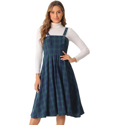 INSPIRE CHIC Women's Plaid Vintage Sleeveless A-Line Overall Pinafore Dress