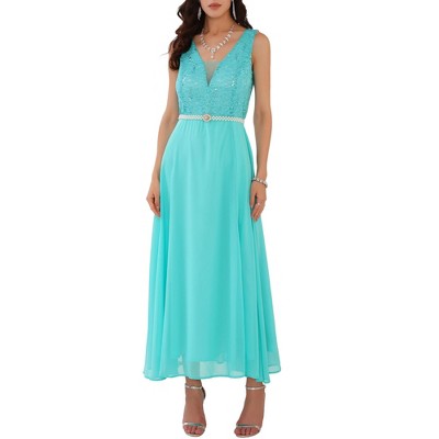 INSPIRE CHIC Women's Lace V Neck Sleeveless Cocktail Wedding Guest Gown Dress
