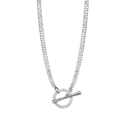 Adornia Silver Plated Crystal Toggle Tennis Necklace