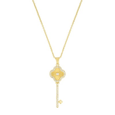 Adornia 14k Gold Plated Pave Clover Key Pendant Necklace