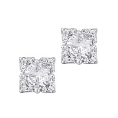 Adornia Silver Plated Flower-Shaped CZ Halo Stud Earrings