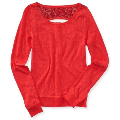 Aeropostale Womens Ls Crochet Back Basic T-Shirt