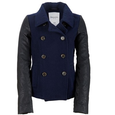 Aeropostale Womens Leather Sleeve Pea Coat