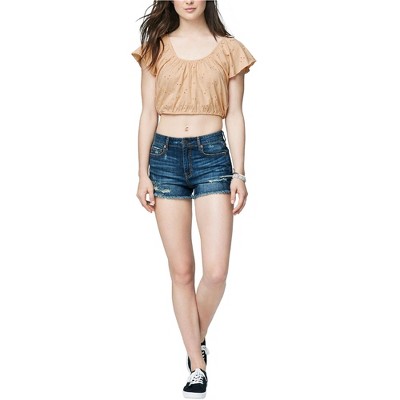 Aeropostale Womens Embroidered Crop Basic T-Shirt
