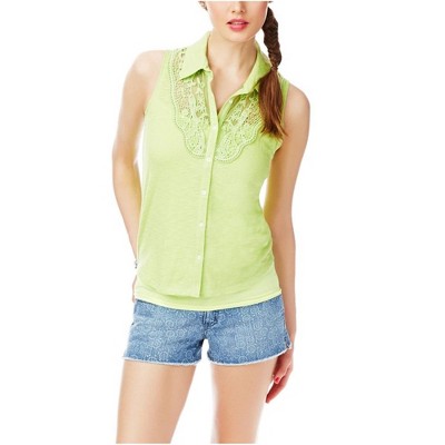 Aeropostale Womens Lace Yoke Sleeveless Button Up Shirt
