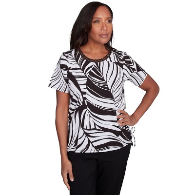 Alfred Dunner Women's Petite Twisted Leaves Top with Side Tie Top