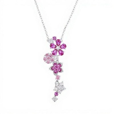 Alilang Women's Crystal Flower Pendant Necklace with Cascading Rhinestone Floral Design - Fuchsia