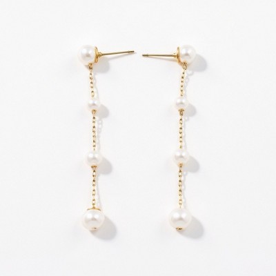 Alilang Pearl Drop Earrings with Delicate Chain Detailing and Graduated Bead Accents for a Soft Feminine Modern Elegant Accessory - Gold