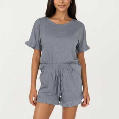 Anna-Kaci Lounge Women's Short Sleeve Ruffle Hem Top and Drawstring Shorts Lounge Set