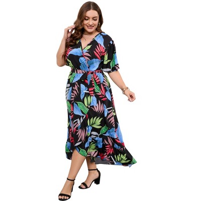 Plus Size dress Women's Plus Size Floral Summer Dress Casual Wrap V Neck A Line Ruffle Belted Dress
