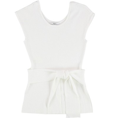 bar III Womens Tie Waist Cap Sleeve Pullover Sweater