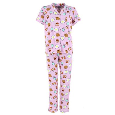 Mentally Exhausted Women's Breakfast Food Notched Collar Pajama Set