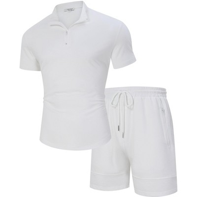 BLUEMING Mens Athletic Sets Mock Neck Quater Zip T-Shirts with Drawstring Pocketed Shorts 2 Piece Lounge Sets