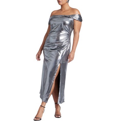 ELOQUII Twist Neck Lame Maxi Dress