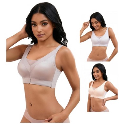 INSPIRE CHIC Women's Wirefree Breathable Push-up Front Bucking Support Strapless Bras 3 Packs