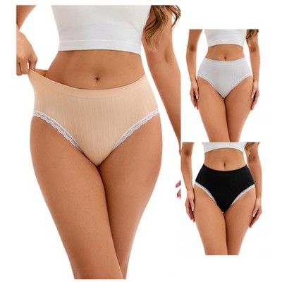 INSPIRE CHIC 3 Pcs Women's High-Waisted Full-Coverage Underwear Wave Trim No Trace Briefs