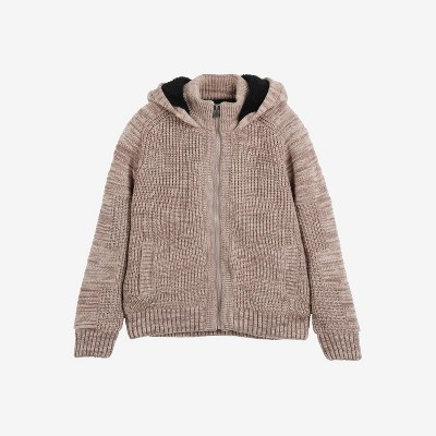 X RAY Boy's Full Zip Faux Shearling Hood Moto Arm Piece Sweater