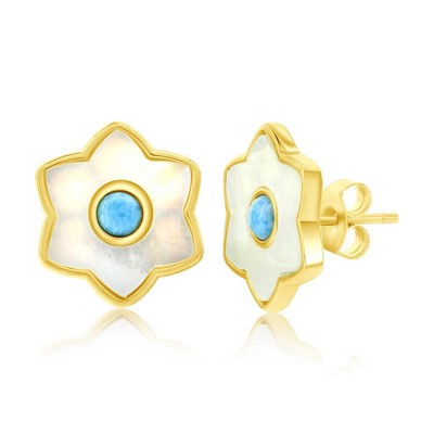 Caribbean Treasures Sterling Silver, Larimar & MOP Flower Studs - Gold Plated