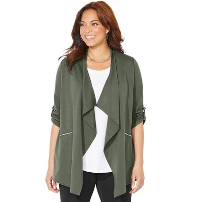 Catherines Cloud Knit French Terry Drape Front Cardigan