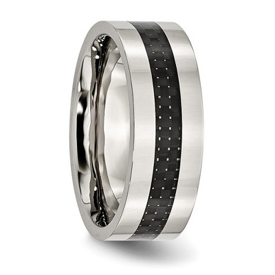 Chisel Stainless Steel Polished with Black Carbon Fiber Inlay 8mm Flat Band Ring