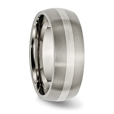 Chisel Titanium Brushed with Sterling Silver Inlay 8mm Band Ring