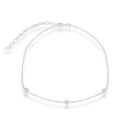 Bella Silver Sterling Silver Small CZ By The Yard Choker - Silver - 12+3 Inch
