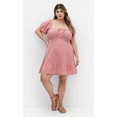 Women's Plus Size Cute Gingham Dress - red | CITY CHIC