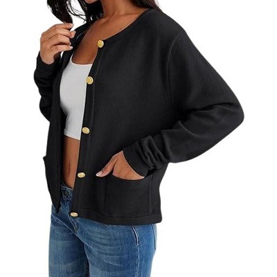 Women's Striped Button Cardigan Open Front Color Block Knit Sweater with Pockets