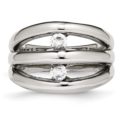 Chisel Stainless Steel Polished Cubic Zirconia Ring