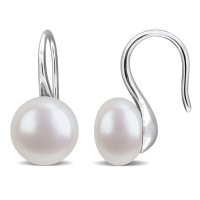 EVERLY JEWELRY | 8-9mm Cultured Freshwater Pearl Hoop Earrings in Sterling Silver – Multiple Pearl color Options.