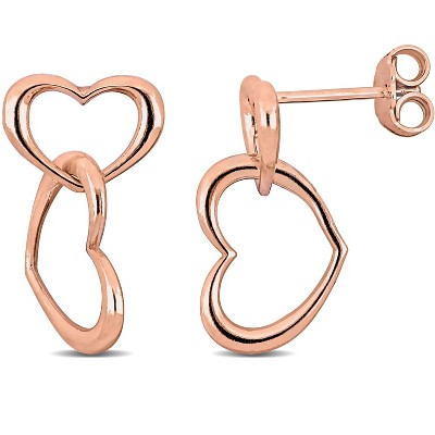 EVERLY JEWELRY | Rose Silver Double Heart Drop Earrings