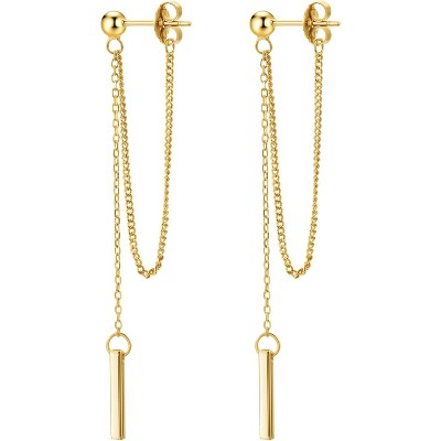 SmallRig Gold Chain Threader Earrings for Women, 18K Gold Plated Dainty Bar Drop Dangle